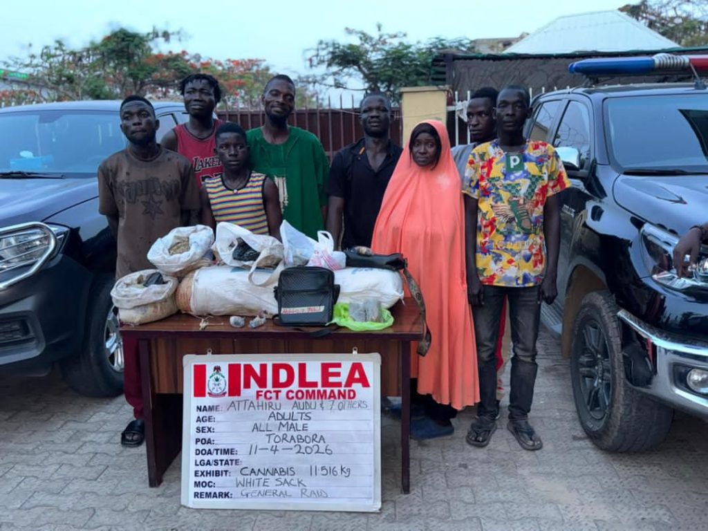 In the capital, Abuja, eight suspects were detained during a raid on a known drug hub, with more than 11 kilograms of cannabis recovered.