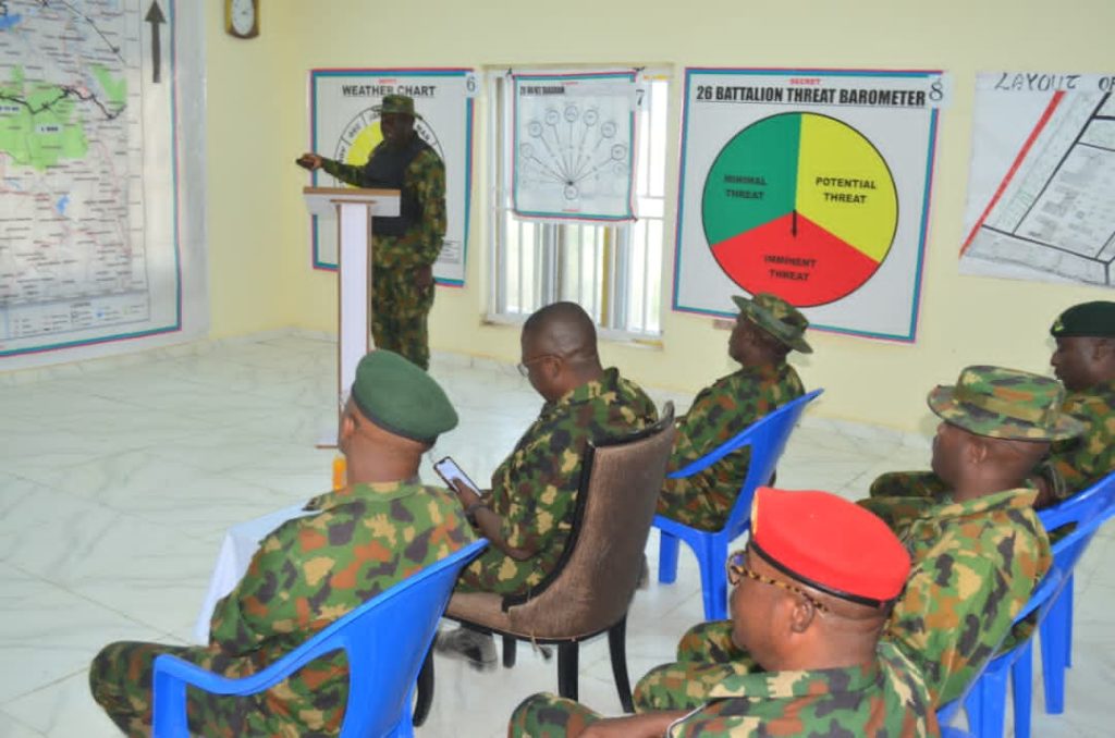 Earlier, Koughna received an operational briefing from Lieutenant Colonel Nasiru Mustapha, commanding officer of the 26 Battalion, at the Forward Operating Base in Isa, where he was updated on current security conditions and ongoing operations.