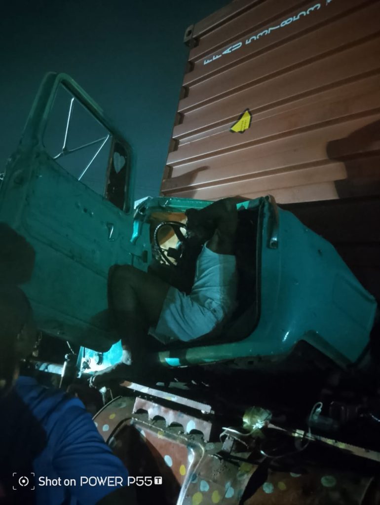 Rescue teams used the agency’s crane, known as “Charlie,” working alongside responders from the Ministry of Transport and other stakeholders, to right-turn the container and free the driver.